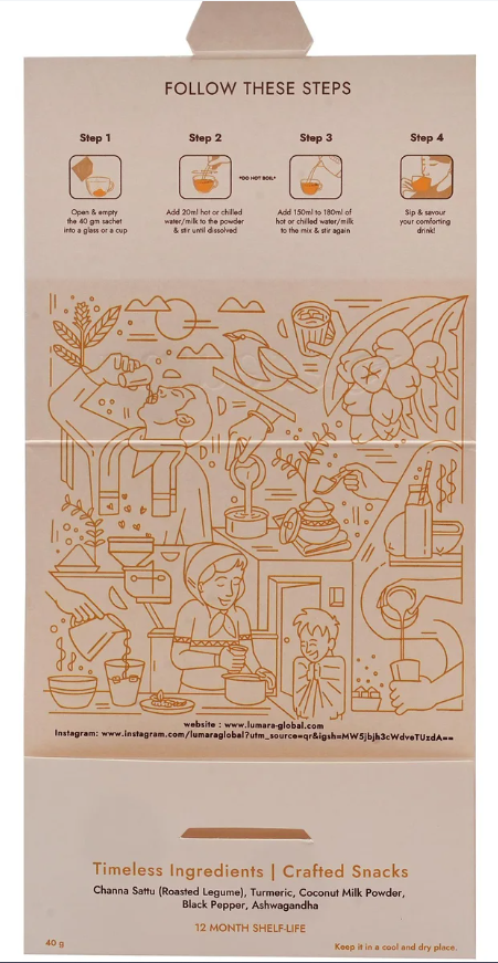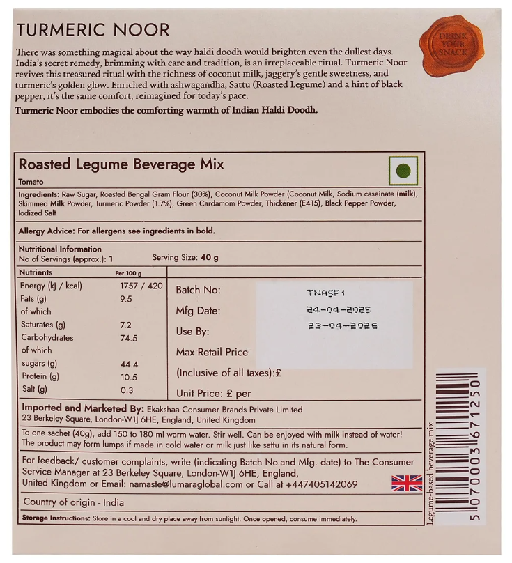There was something magical about the way haldi doodh would brighten even the dullest days. India’s secret remedy, brimming with care and tradition, is an irreplaceable ritual. Turmeric Noor revives this treasured ritual with the richness of coconut milk, jaggery’s gentle sweetness, and turmeric’s golden glow. Enriched with ashwagandha, Sattu (Roasted Legume) and a hint of black pepper, it’s the same comfort, reimagined for today’s pace. Turmeric Noor embodies the comforting warmth of Indian Haldi Doodh.